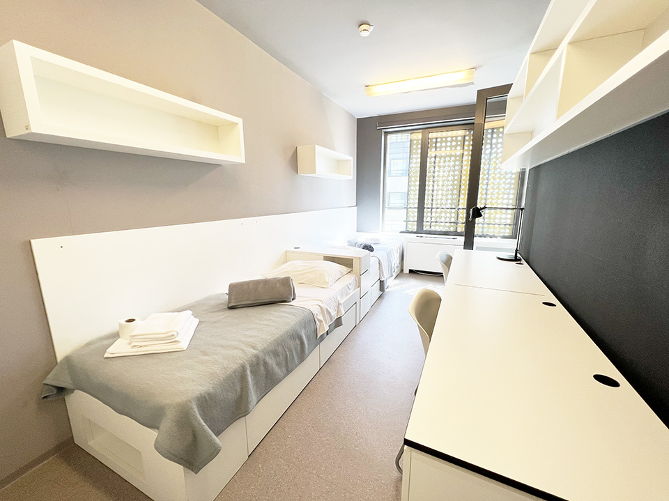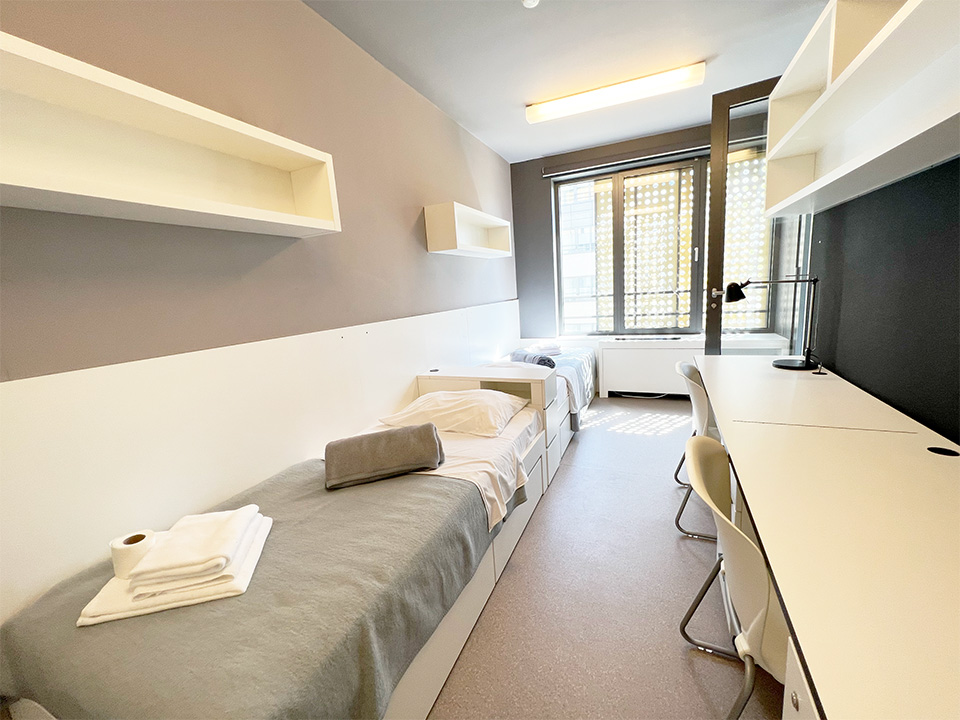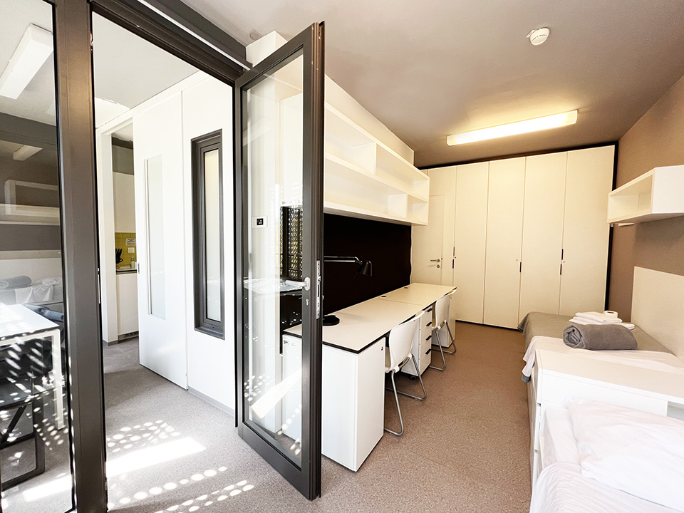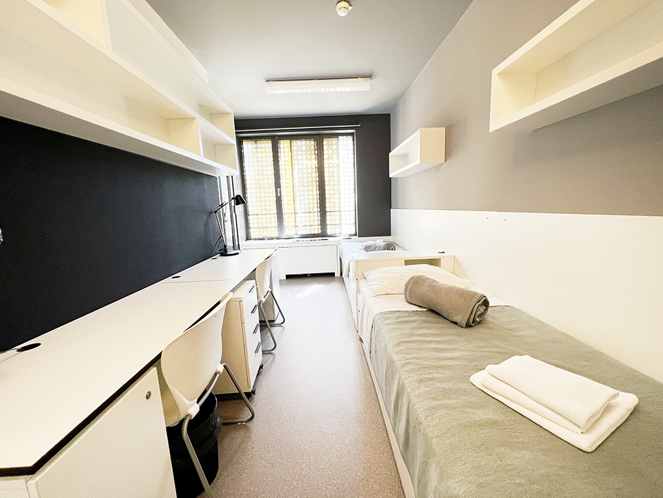 Dvokrevetna soba je kompletno, suvremeno i funkcionalno opremljena uređajima koji pružaju udobnost za dvije osobe. Smještaj u dvokrevetnoj sobi organiziran je na način da dvije odvojene spavaće sobe dijele kuhinju, kupaonicu, toalet i lođu.
