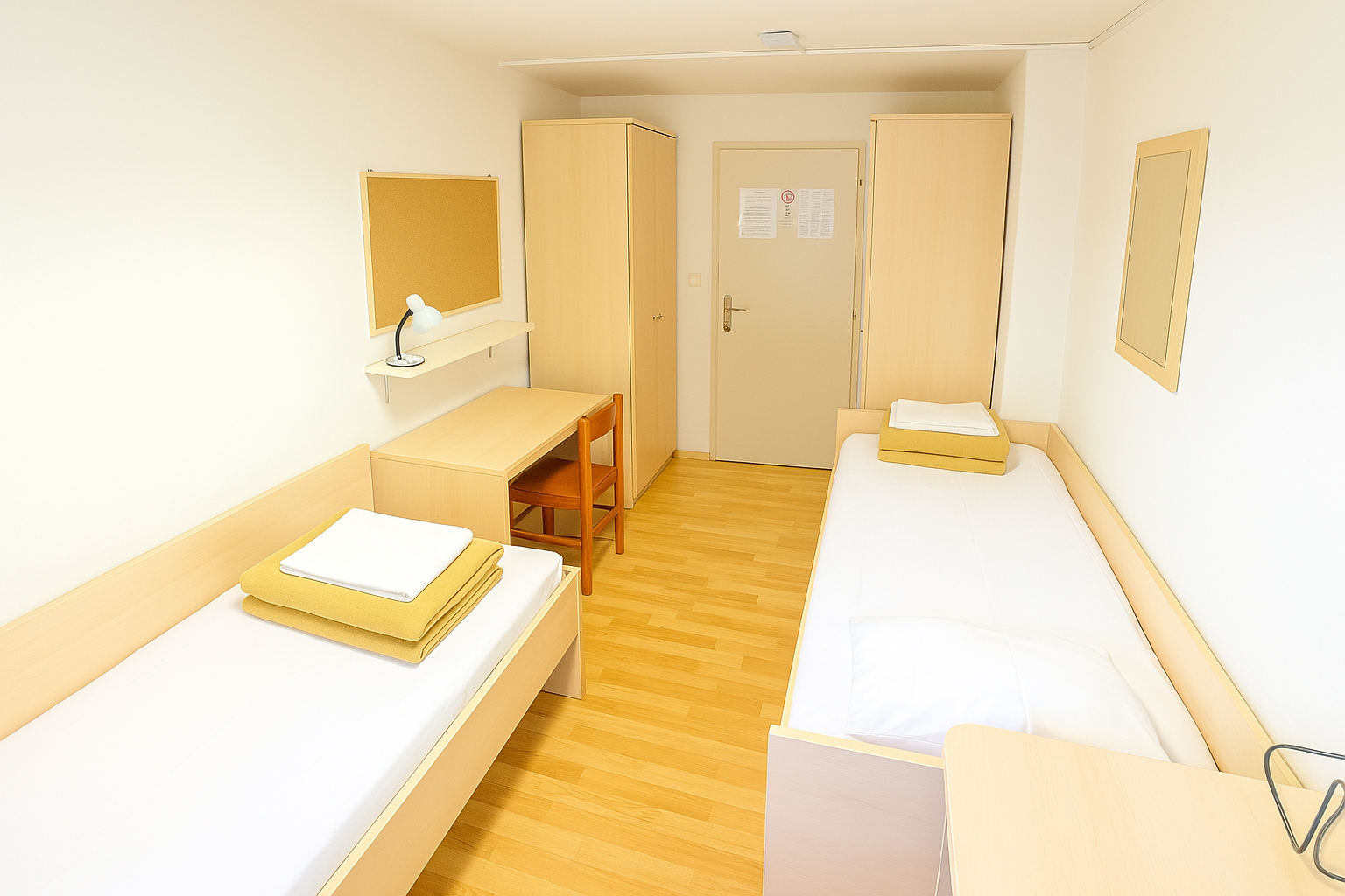 Dvokrevetne sobe idealne su za parove, prijatelje ili poslovne putnike koji žele uživati u udobnom i pristupačnom smještaju. Soba ima pristup zajedničkoj kupaonici, toaletu i čajnoj kuhinji. Također, gosti imaju pristup besplatnom Wi-Fi-u, besplatnom parkiralištu i drugim pogodnostima koje će vaš boravak učiniti bezbrižnim i opuštajućim.